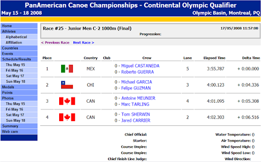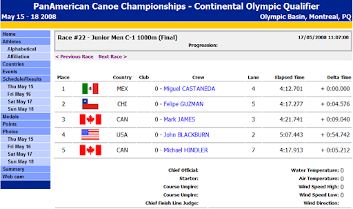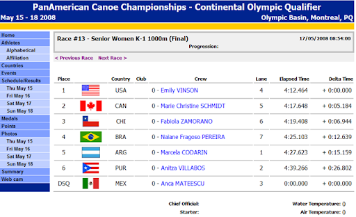 Concluido el Tercer día de Competencias en el Campeonato Panamericano de Canotaje evento que se efectúa en Montreal, Canadá. Los Resultados mas alentadores del Equipo Chileno fueron: